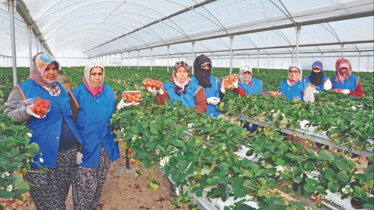 Mersin'in Silifke ilçesinde örtü altında topraksız yetiştirilen çilekler toplandı.