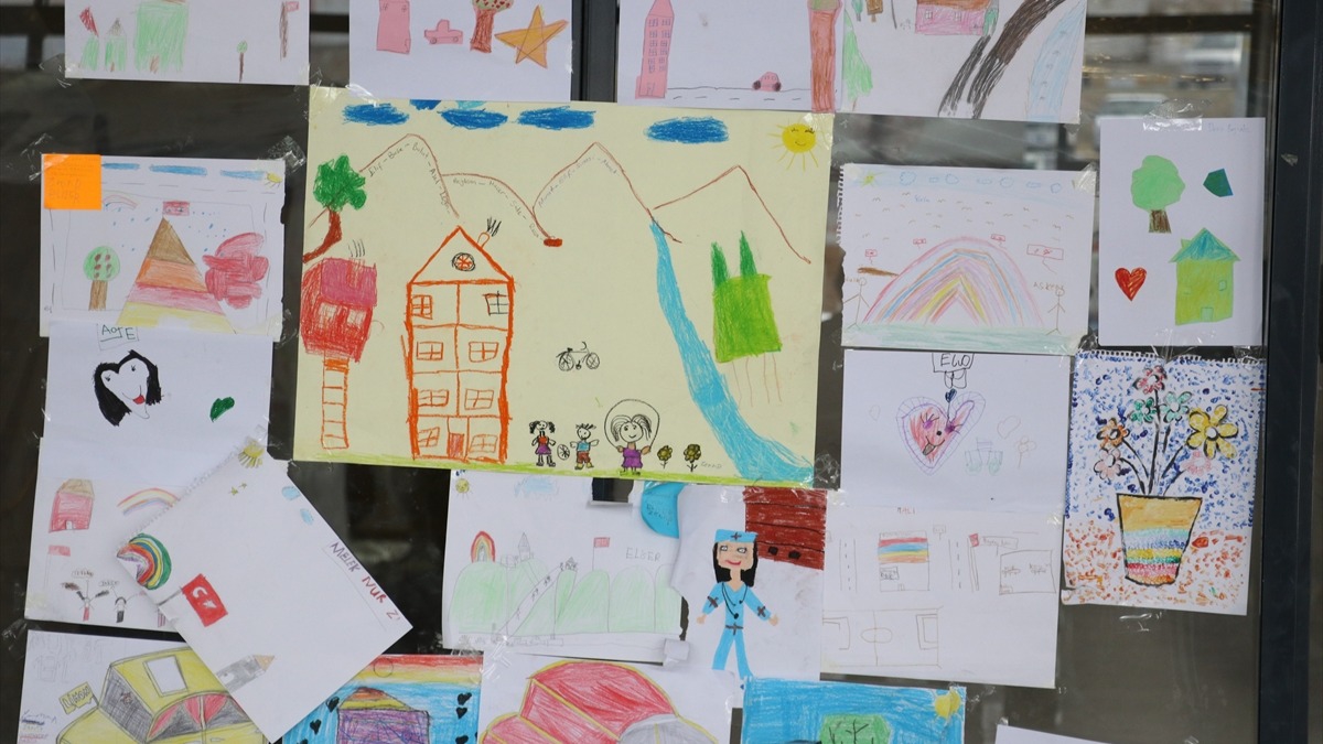 Kahramanmaraş merkez üslü depremlerin yıkıma neden olduğu Malatya'da evleri yıkılan ya da ağır hasar gören depremzedelerin geçici barınması amacıyla Mişmiş Park Fuar Alanı içinde kurulan çadır kentte farklı yaş gruplarına yönelik psikososyal faaliyetler yürütülüyor. Çadır kentte kendileri için ayrılan çadırdaki etkinliklere katılan çocukların yaptığı resimler ise fuar alanı girişindeki cam bölmeye asılarak sergileniyor.