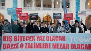 Türkiye Gençlik Vakfı (TÜGVA) gençleri Gazze'de sivillere yönelik yapılan katliamın bir an önce durması için tüm Türkiye'de sabah namazında buluşarak İsrail'i protesto etti. 15 gündür süren katliamda evlerinde, ibadethanelerinde, hastanelerinde hedef alınan siviller için harekete geçti.