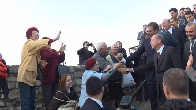 Kale Meydanı'nda Erdoğan ve eşini binlerce kişi karşıladı ve sevgi gösterisinde bulundu. Yürüyüş sırasında dakikalarca alkışlar susmadı.