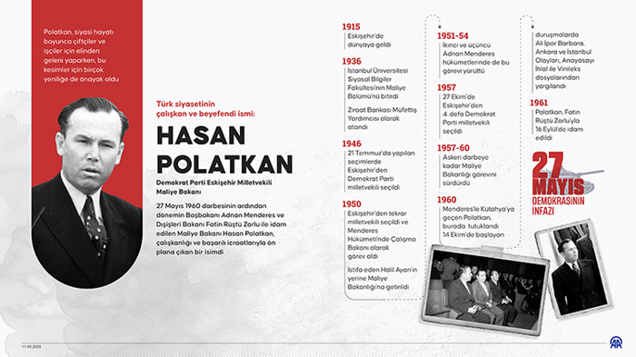 Türk demokrasi tarihinin kara lekelerinden 1960 askeri darbesi sonrası Yassıada'daki yargılamalar sonucu idam edilen Başbakan Adnan Menderes ile Dışişleri Bakanı Fatin Rüştü Zorlu ve Maliye Bakanı Hasan Polatkan'ın vefatının üzerinden 64 yıl geçti.