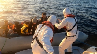 Muğla'nın Datça ilçesi açıklarında Yunanistan unsurlarınca Türk kara sularına itilen lastik bottaki 28 düzensiz göçmen kurtarıldı.