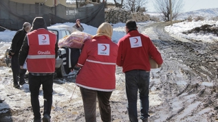 Malzemeler, kara yoluyla ulaşılamayan köylere Türk Silahlı Kuvvetlerine ait helikopterler ve arazi araçlarıyla götürüldü.