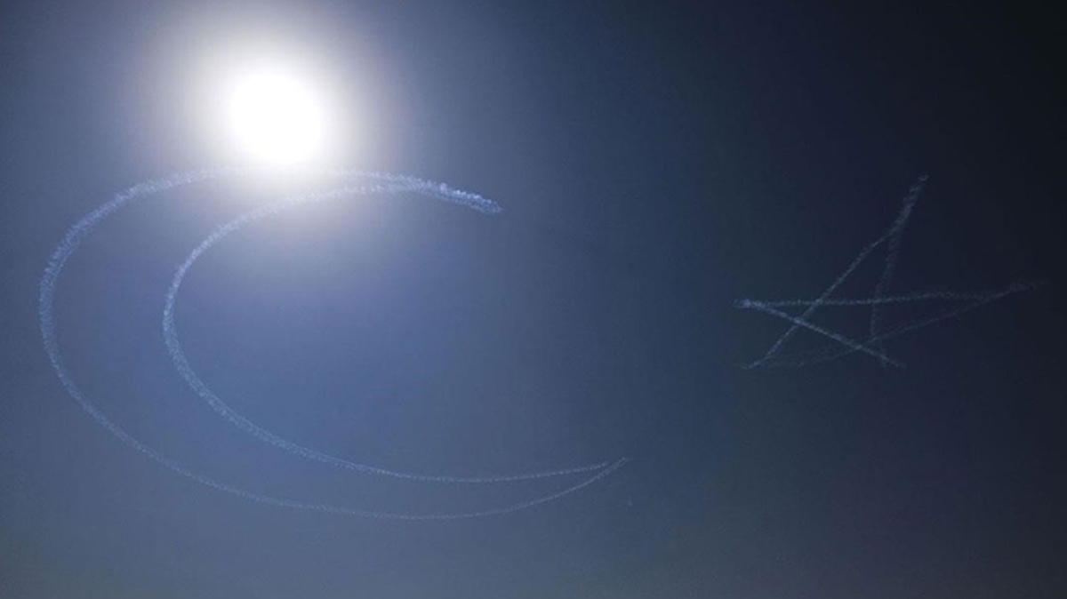 Gösteriye gökyüzüne "ay yıldız' imzası atarak başlayan Türk Yıldızları, ardından 6 uçakla akrotim dünyasında başka bir ekibin yapamadığı hareketleri sergiledi.