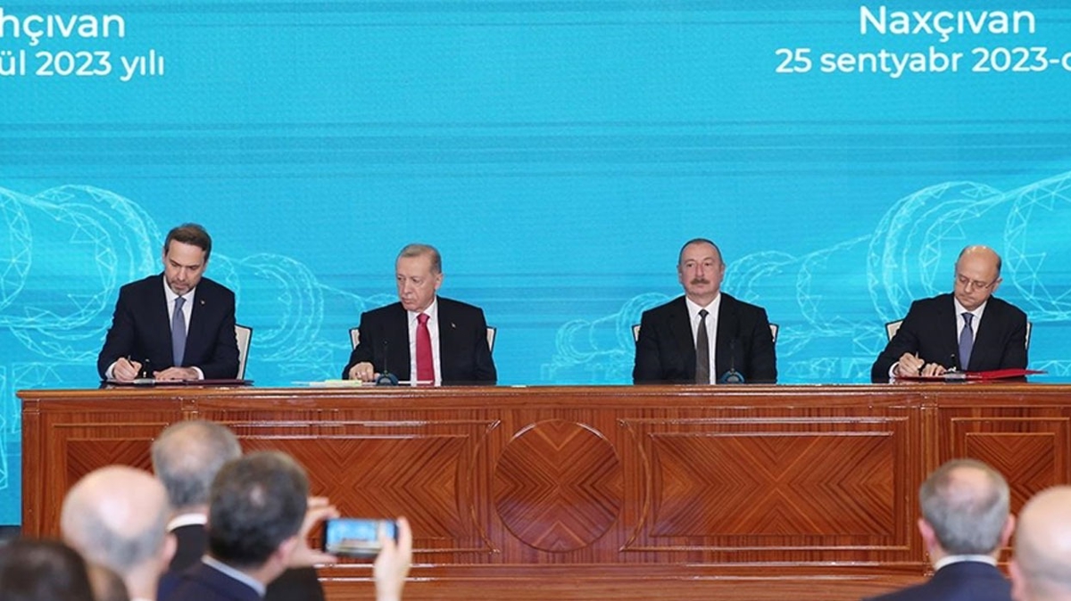 Cumhurbaşkanı Erdoğan ile Azerbaycan Cumhurbaşkanı Aliyev, "Türkiye Cumhuriyeti ve Azerbaycan Cumhuriyeti Arasında Kars-Nahçıvan Demiryolu Projesi'ne İlişkin Niyet Protokolü"nü imzaladı.