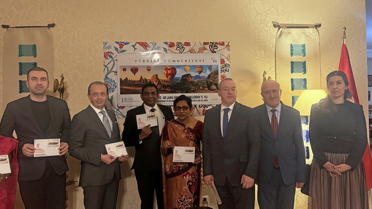 Sri Lanka ve Türkiye arasındaki diplomatik ilişkilerin 75'inci yıldönümü dolayısıyla hatıra posta pulu basıldı.