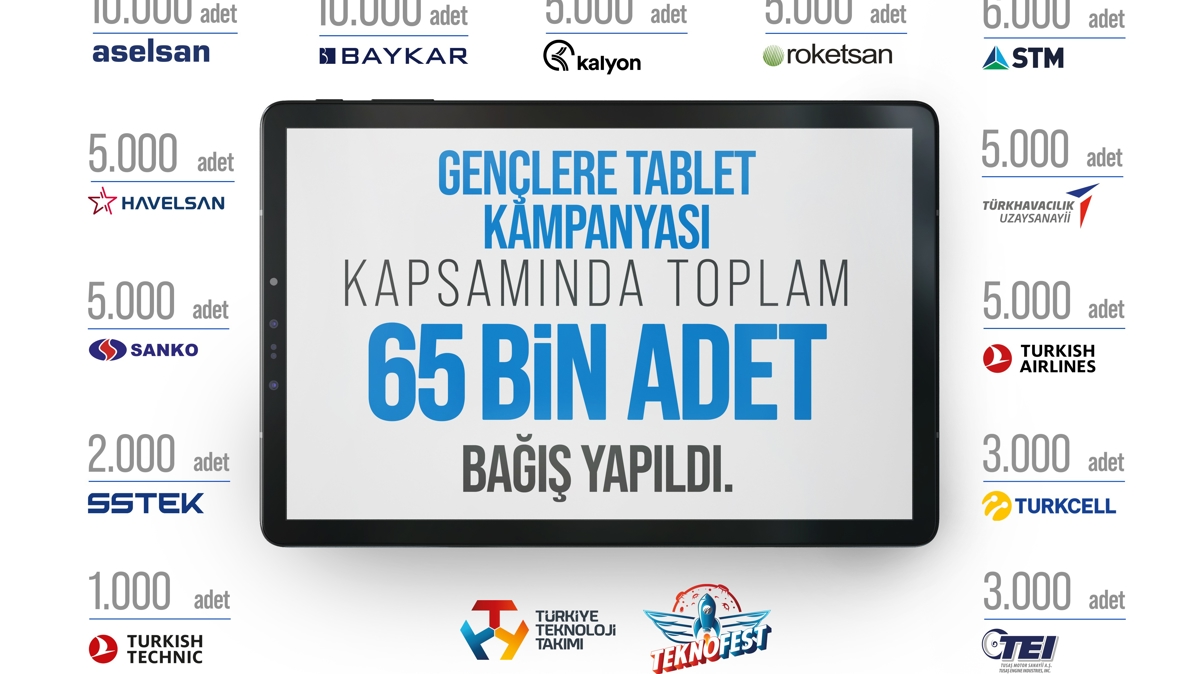 Türkiye Teknoloji Takımı Vakfı Mütevelli Heyeti Başkanı, TEKNOFEST Yönetim Kurulu Başkanı Selçuk Bayraktar'ın depremden etkilenen öğrencilerin eğitimine destek olmak için başlattığı kampanyaya TEKNOFEST paydaşlarından büyük destek geldi. Selçuk Bayraktar "depremden etkilenen öğrencilerimizin eğitimlerine kaldıkları yerden devam edebilmeleri, YKS ve LGS sürecindeki çalışmalarına katkı sağlamak amacıyla BAYKAR olarak 10 bin adet tablet bağışında bulunuyoruz" dedi. Tüm milletimizi ve kurumlarımızı bu anlamlı kampanyaya davet eden Bayraktar'ın çağrısına TEKNOFEST paydaşlarından cevap gecikmedi. Kampanyaya;