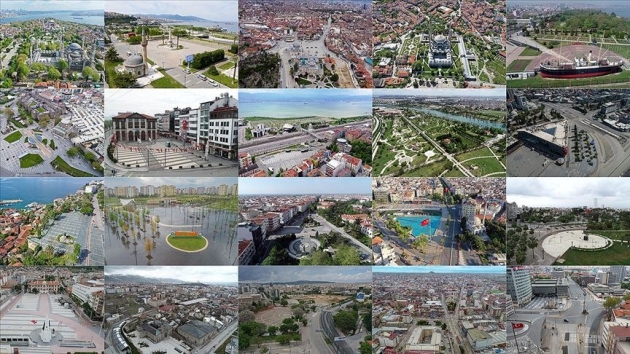 Sokağa çıkma kısıtlaması uygulanan 30 büyükşehir ve Zonguldak'ın yanı sıra "Evde kal" çağrısına büyük oranda uyulan diğer 50 kentin meydanlarında salgın öncesi görülen yaya ve araç kalabalığı yerini güvercinlere bıraktı.
