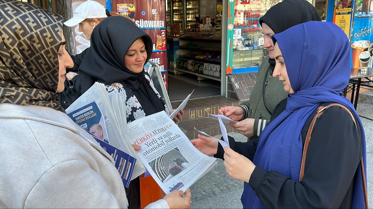 Yurt dışında yaşayan vatandaşlar, Berlin'in çeşitli noktalarında kendilerine ulaştırılan "Türkiye Yüzyılı" gazetesine yoğun ilgi gösterdi.