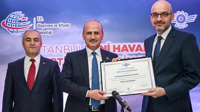 Konuşmasından sonra SHGM tarafından hazırlanan sertifikaları İGA Havalimanı İşletmesi İcra Kurulu Başkanı ve Genel Müdürü Kadri Samsunlu'ya takdim eden Turhan, "İnşallah bu havalimanının bundan sonra ülkemizin ulusal, uluslararası hava ulaşımında güzel, faydalı hizmetler vermesi, ülkemizin büyümesine, gelişmesine faydalar sağlaması dileğiyle sertifikayı takdim ediyorum." ifadelerini kullandı.