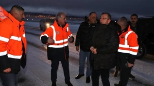 Kars Valisi ve Belediye Başkan Vekili Ziya Polat, olumsuz hava koşulları nedeniyle tır trafiğine kapatılan Kars-Iğdır kara yolunda incelmelerde bulundu.