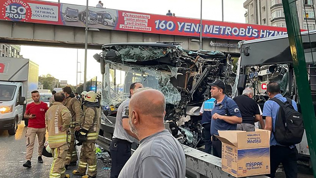 Avcılar'daki metrobüs durağında henüz belirlenemeyen nedenle iki metrobüs kafa kafaya çarpıştı. Arkadan gelen diğer iki metrobüs de kazaya karışan araçlara çarptı.