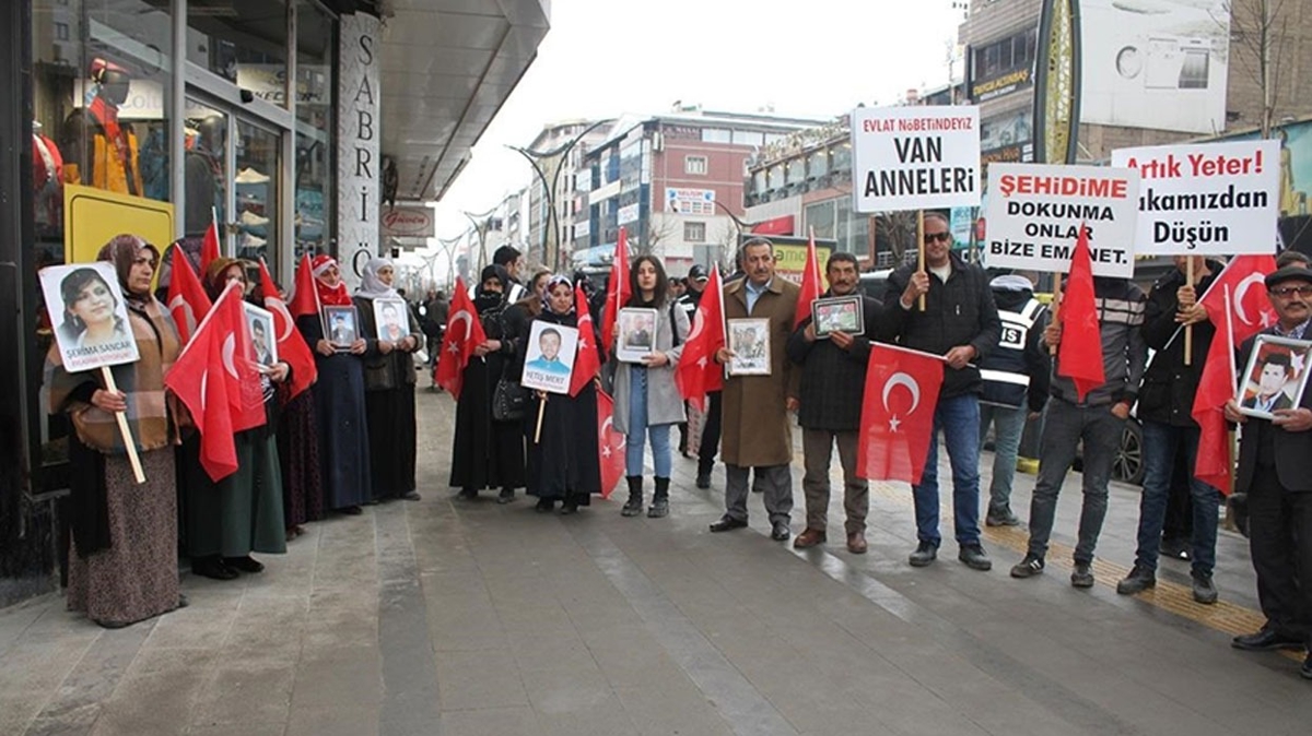Cumhuriyet Caddesi'nde bir araya gelen aileler, "Anneler HDP'yi lanetliyor", "Evlat nöbetindeyiz", "Artık yeter, yakamızdan düşün", "Şehidime dokunma, onlar bize emanet", "Çocuklarımız kimsenin piyonu olmayacak" ve "Van anneleri evlat nöbetinde" yazılı dövizler taşıdı.