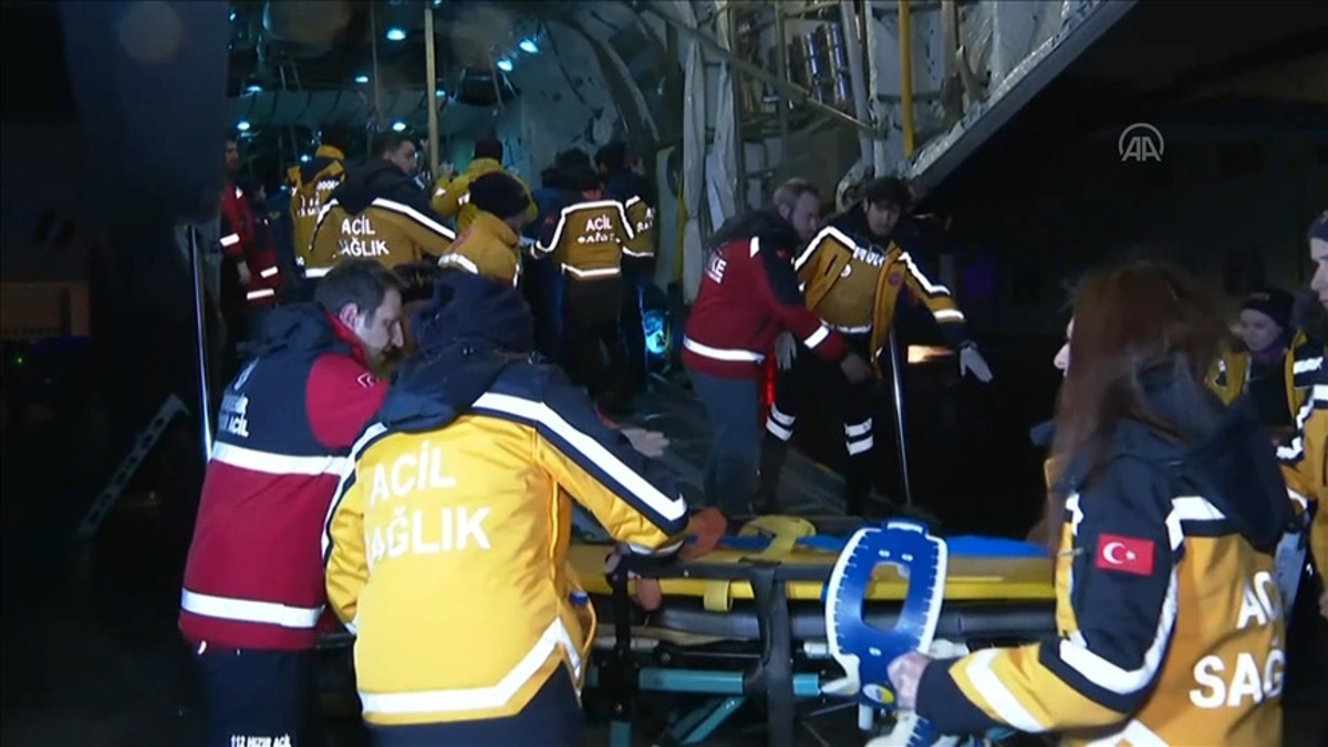 Kahramanmaraş merkezli depremlerde yaralanan bazı vatandaşları taşıyan askeri uçak Atatürk Havalimanı'na indi.