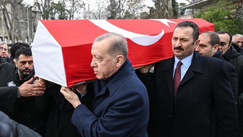 Cumhurbaşkanı Erdoğan ile TBMM Başkanı Numan Kurtulmuş, namazın ardından Alatlı'nın tabutuna omuz verdi.