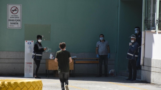 Koronavirüs önlemleri kapsamında adaylara sınav binası girişlerinde görevliler tarafından maske ve dezenfektan dağıtıldı. İsteyen adaylar, dezenfektanlarını yanlarında getirdi. Sınav görevlilerine de maske ve dezenfektanla birlikte lateks eldiven dağıtıldı.