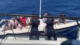 Muğla'nın Marmaris ilçesi açıklarında Yunanistan unsurlarınca Türk kara sularına itilen fiber teknedeki 15 düzensiz göçmen kurtarıldı.