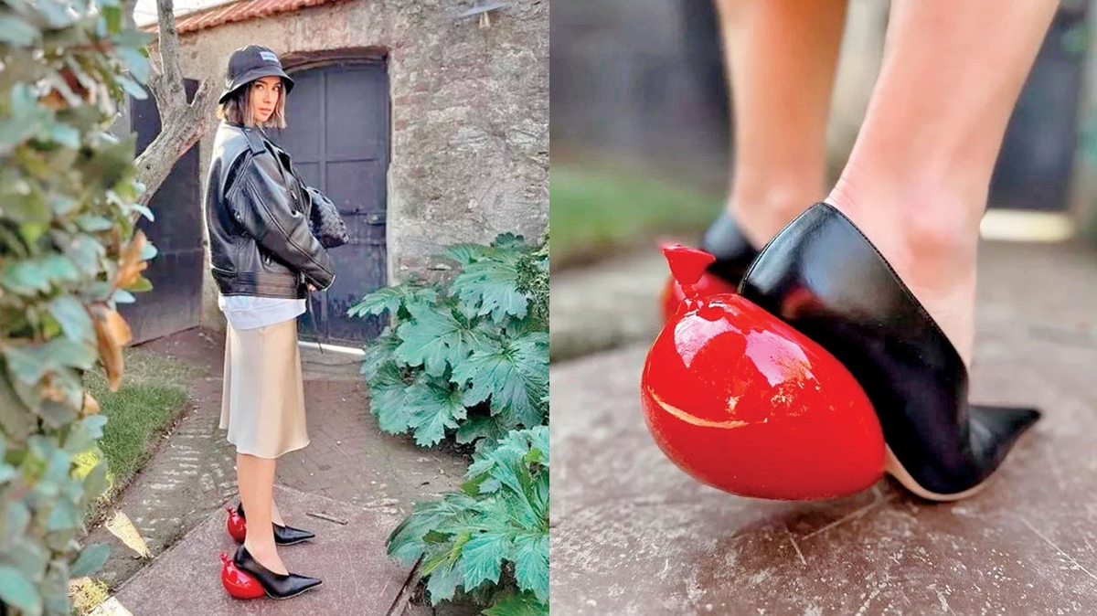 Buse Terim Bahçekapılı, 'balon' konseptli tasarım ayakkabı giydi.