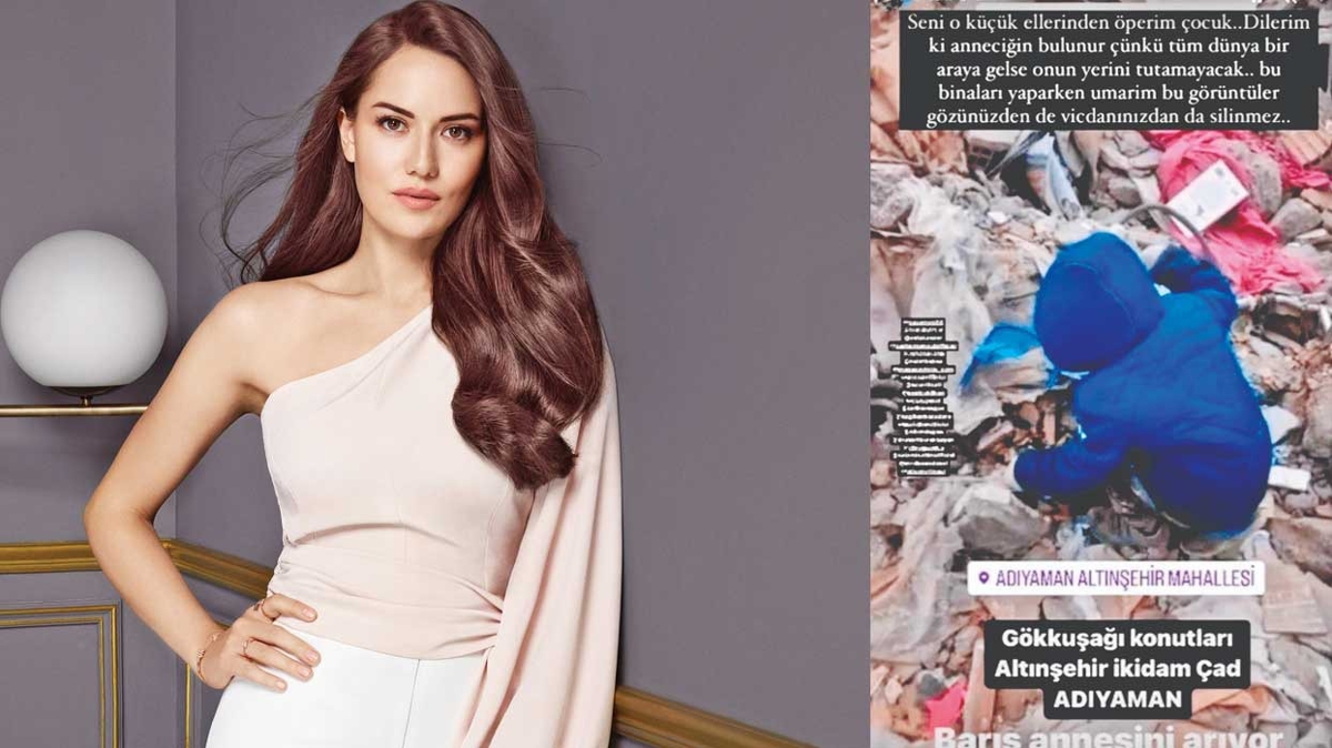Oyuncu Fahriye Evcen, sosyal medya hesabından depremzede çocuk için duygulandıran bir paylaşım yaptı.