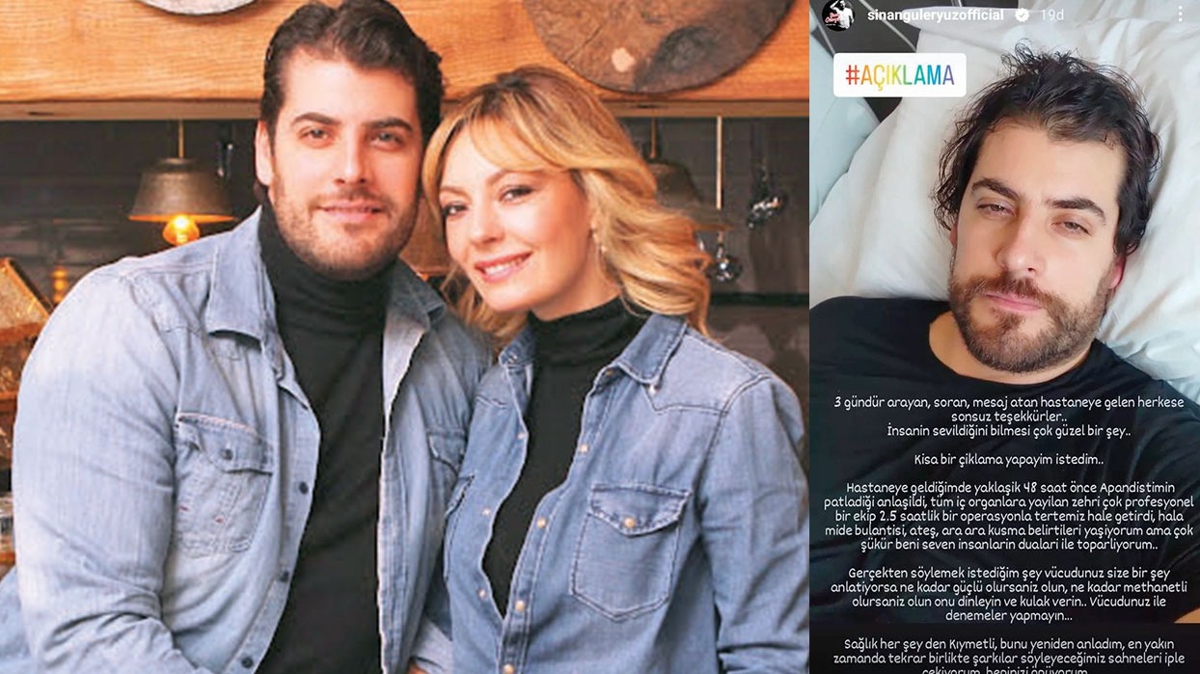 Oyuncu Özge Özder'in müzisyen eşi Sinan Güleryüz hastanelik oldu. Üç gün önce apar topar apandisit ameliyatı olduğunu açıklayan Güleryüz, hastane odasından yayınlandığı fotoğrafa, "Hastaneye geldiğimde yaklaşık 48 saat önce apandisitimin patladığı anlaşıldı. Tüm iç organlara yayılan zehir, çok profesyonel bir ekip sayesinde 2 buçuk saatlik bir operasyonla tertemiz hale getirildi. Hâlâ mide bulantısı, ateş, ara ara kusma belirtileri yaşıyorum ama çok şükür beni seven insanların dualarıyla toparlıyorum" notunu yazdı.