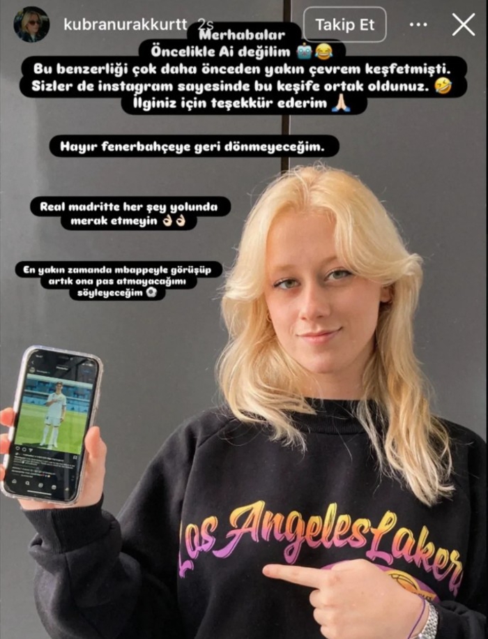 Arda Güler'e olan benzerliğiyle kısa sürede sosyal medyada gündem olan Kübra Nur Akkurt, “yapay zeka” iddialarına açıklık getirdi. Akkurt, merak edilen sorulara net yanıt verdi.