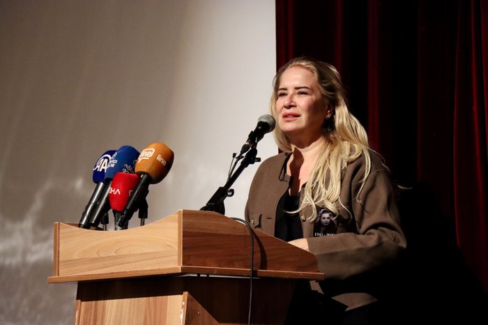 Törende konuşan sanatçının kızı Fatma Çelenk, bu acı günde törene katılanlara teşekkür ederek, "Annemin son sahnesinde ona yoldaş oldunuz." dedi.