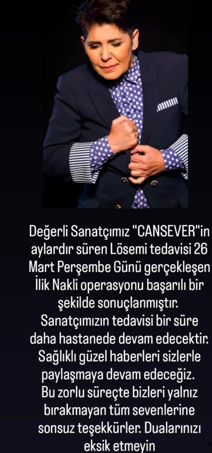 26 Mart'ta hastaneden paylaşım yapan şarkıcı Cansever, ilik nakli için ameliyat masasına yatacağını duyurmuş ve sevenlerinden dua istemişti.