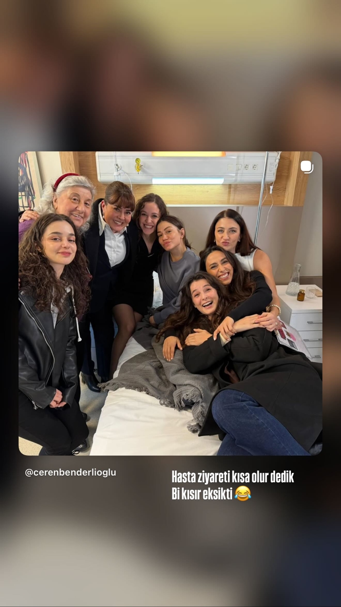 Fotoğraf karesinde Özdemir'in yanında Ebru Aytemur ve Büşra Develi gibi oyuncu arkadaşlarının olduğu görüldü. Demet Özdemir de aynı fotoğrafı kendi hesabında paylaşarak altına, "Hasta ziyareti kısa olur dedik bir kısır eksikti" notunu düştü.