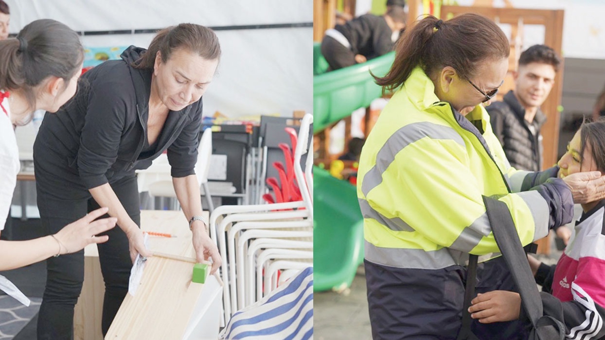 Demet Akbağ, Eda Kosif ve Cihan Kamer, Kahramanmaraş'ta çadır kentte yaşayan çocuklara koştular.