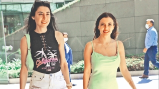 Oyuncu Aygün Aydın, bir arkadaşıyla Zorlu'da objektiflere yansıdı.