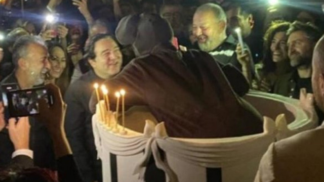 Yakın dostlarının katıldığı gecede mekana, Say için devasa pasta getirildi. Ünlü piyanist, eşi Ece Dağıstan’ın pastadan maymun kostümüyle çıkmasıyla şoke oldu.