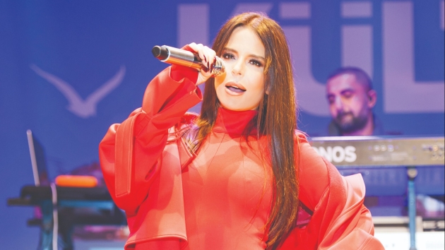 Şarkıcı Simge Sağın, Beyoğlu Kültür yolu projesi kapsamında Galata Kulesi önünde sahne aldı.