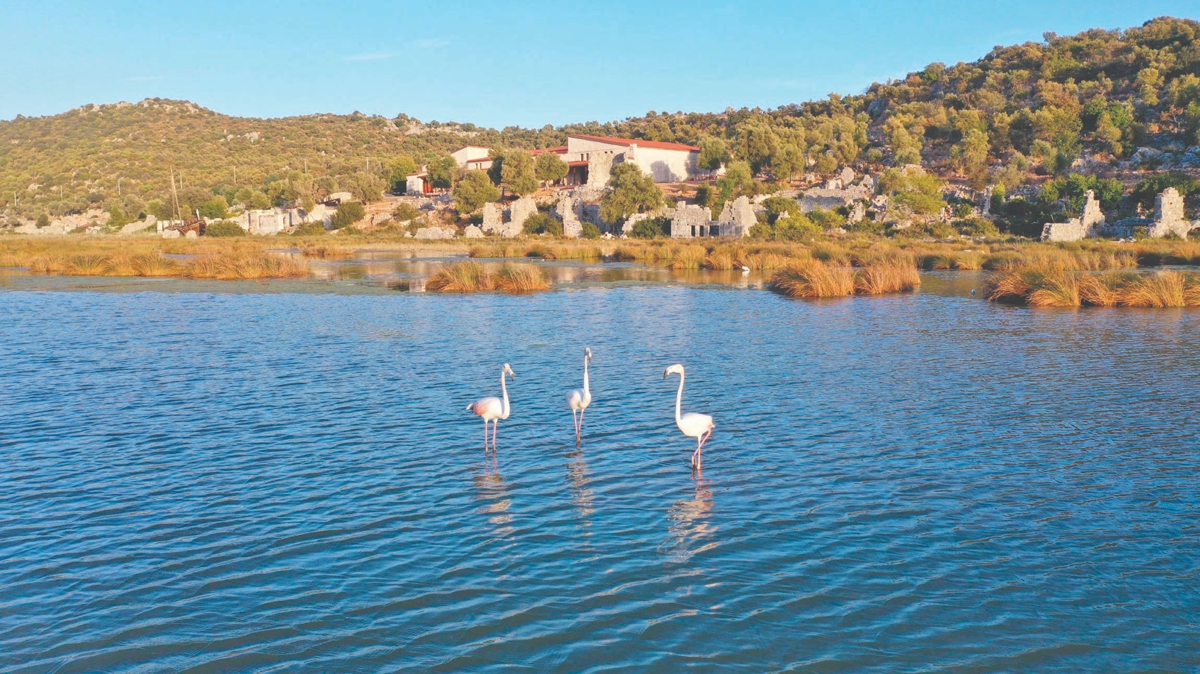 Antalya'nın Demre ilçesindeki Noel Baba Kuş Cenneti, flamingoların uğrak yeri oldu.