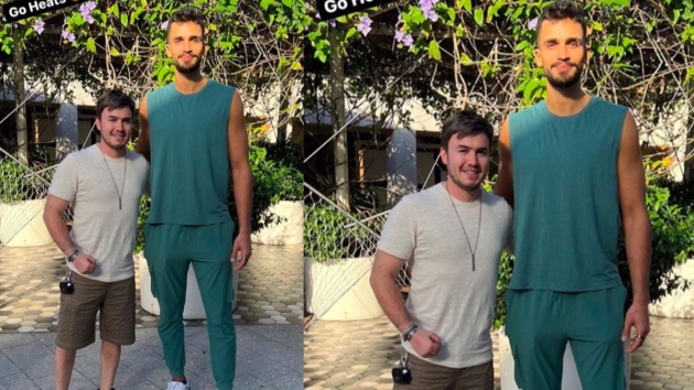 Mustafa Ceceli eşi Selin İmer ile Miami'de tatil yaparken NBA ekiplerinden Miami Heat'te forma giyen Türk basketbolcu Ömer Yurtseven'le buluştu.