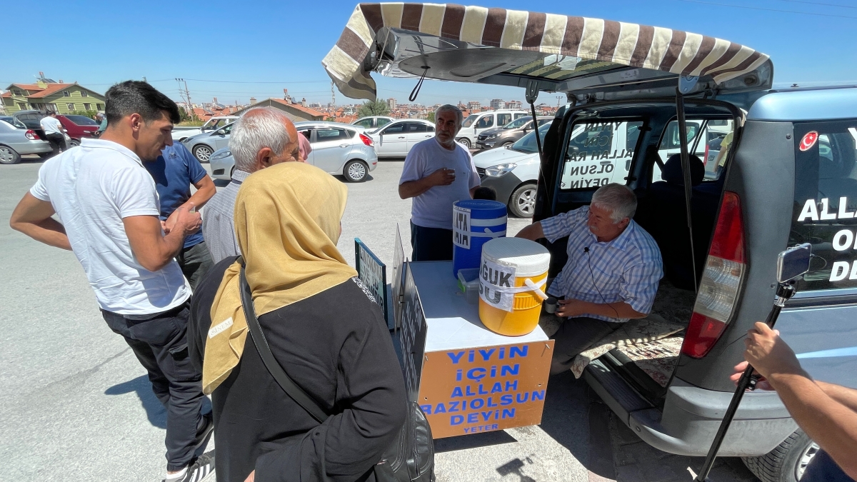 Konya'da yaşayan esnaf emeklisi Lokman Yıldız, 4 yıldır hastane önlerinde hasta yakınlarına çorba dağıtıyor. 'Çorbacı Dayı' olarak bilinen 59 yaşındaki Yıldız, sürdürdüğü çorba ikramı geleneğine sıcak yaz günlerinde soğuk su ve limonatayla devam ediyor. Yıldız "Hastanelere köyden gelen de oluyor, sıkıntısı olanı da var. Onlara dar gününde biraz destek olabilirsek bizden bahtiyarı yok" diyor.