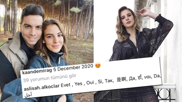Aslışah Alkoçlar, Kaan Demirağ'ın evlilik teklifine, her dilde 'evet' anlamına gelen kelimeleri yazdı. Alkoçlar'ın mutluluğuna tebrik mesajları yağdı.