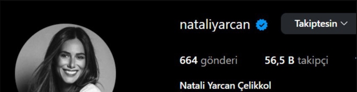 Natali Yarcan, sosyal medya hesabındaki kullanıcı adını Natali Yarcan Çelikkol olarak güncelledi.