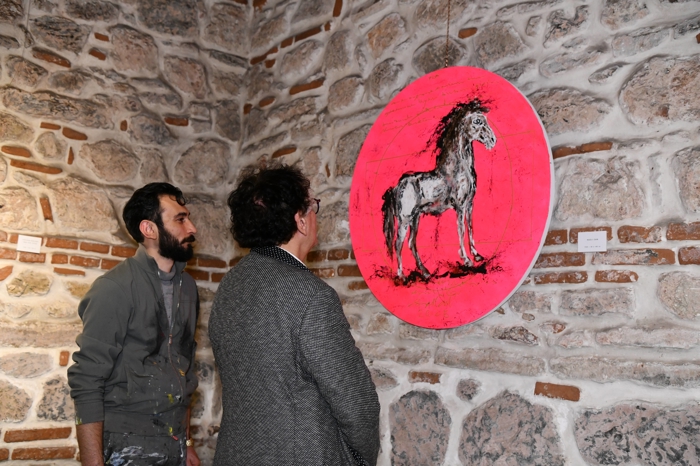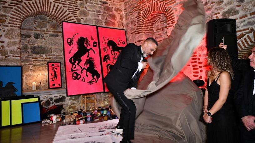 Gecenin en dikkat çeken anı, sanatçının davetlilerin gözleri önünde gerçekleştirdiği canlı resim performansı oldu. Tarihi hamamın taş dokusu ve ışıkları eşliğinde tamamlanan eser, açılışın simgesine dönüştü. Davoud ayrıca sergi boyunca her gün iki saatlik canlı heykel performansına da devam edecek.