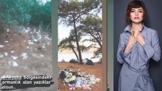 Oyuncu Gonca Vuslateri, Muğla Akyaka'da kampçıların bıraktığı çöplere tepki gösterdi.
