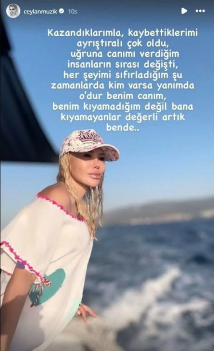 Sosyal medya hesabında sık sık paylaşımlar yapan Ceylan, lüks teknesindeki bir kareyi ve altına düştüğü notla dikkat çekti. Ünlü şarkıcı, gönderisinde şu ifadeleri kullandı: