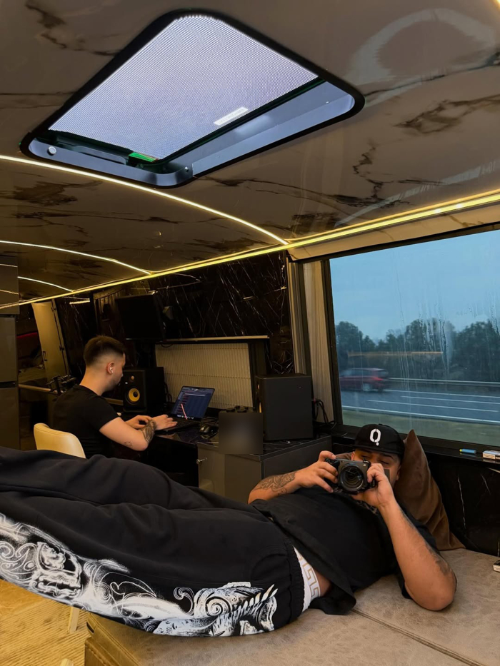 5 ayda 15 ülkede, 63 konser verecek olan rapçinin tur otobüsü ve iç dekorasyonu kısa sürede olay oldu.