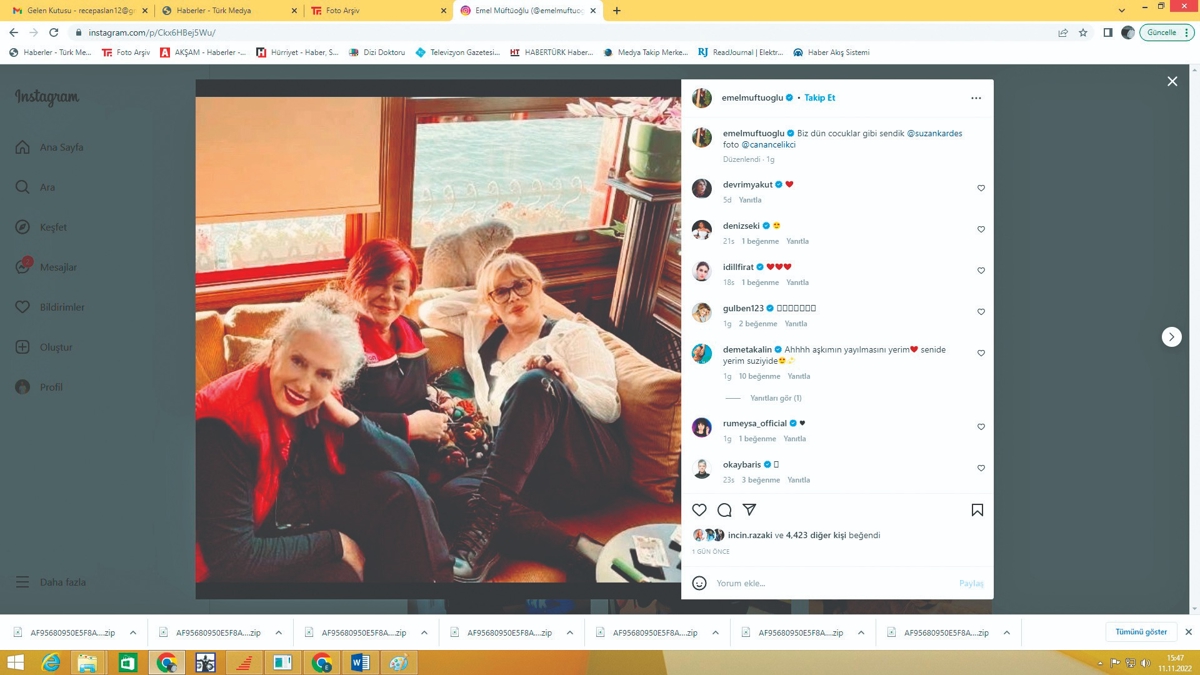 Sanatçılar Sezen Aksu, Suzan Kardeş ve Emel Müftüoğlu bir araya geldi. Aksu'nun Kanlıca'daki yalısında buluşan ekip, boğaza karşı müzik dünyası üzerine sohbet etti. Keyifli saatler geçiren ekipten Müftüoğlu, verdikleri pozlarını sosyal medyadan, "Biz dün çocuklar gibi şendik" yazdı.