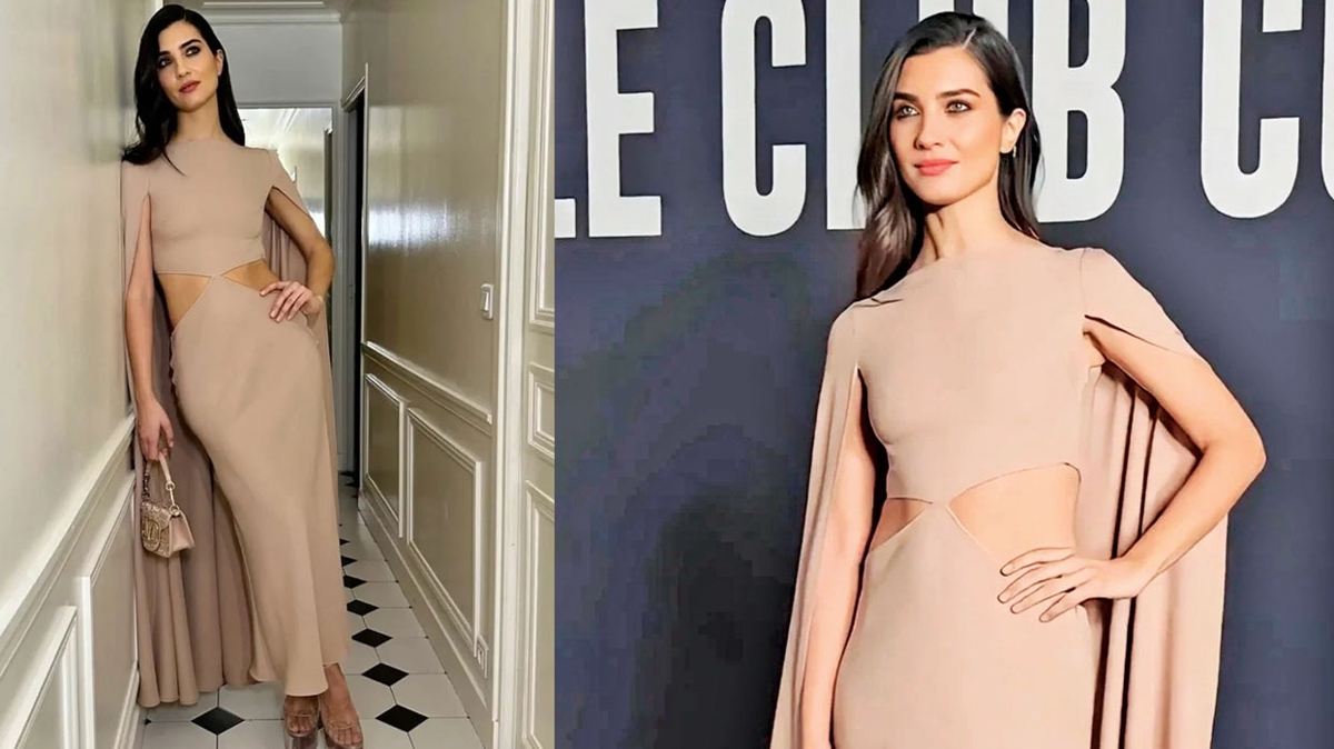 Tuba Büyüküstün, Paris'te gerçekleşen Valentino defilesine katıldı. İkiz kız çocuğuyla Paris'te yaşayan Büyüküstün, defilede kahve tonlarında bel dekoltesi olan pelerinli bir elbise giydi. Büyüküstün, fit hali ve kusursuz fiziğiyle dikkatleri üzerine çekti.