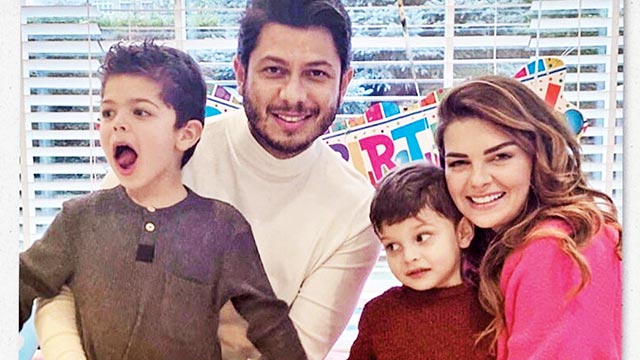 Ünlü çift, oğulları Ali Demir ve Eyüp Can ile mutluluk pozu verdi. Sosyal medyada beğeni yağdı.