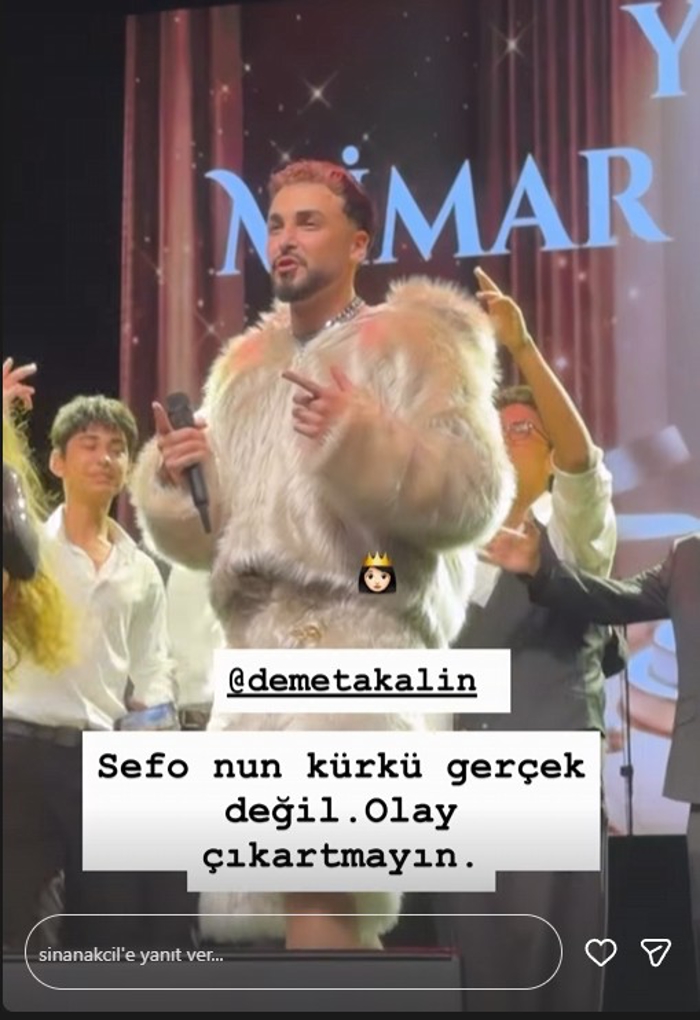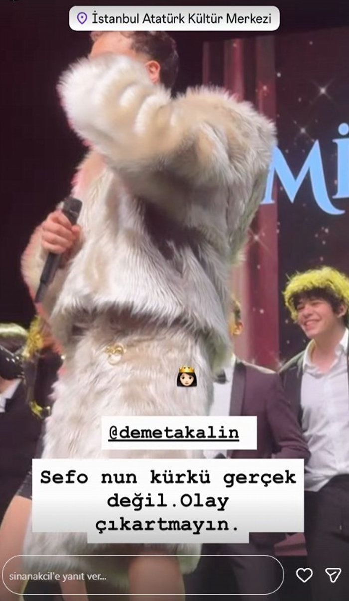 Geceden paylaşımda bulunan Akçıl, "Sefo'nun kürkü gerçek değil, olay çıkartmayın" ifadelerini kullandı.
