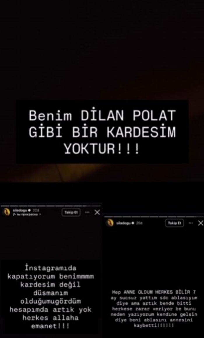 Sıla Doğu ile Dilan Polat, geçtiğimiz günlerde çıktıkları akşam yemeğinde tartışma yaşamıştı. İkili arasındaki gerilimin, Sıla Doğu'nun Dilan Polat'a söylediği "fal baktırdım tüp bebek yaptırmasın çocuğu düşecek" sözleri sonrasında büyüdüğü öne sürülmüştü. Doğu, sosyal medyadan, "Benim Dilan Polat gibi bir kardeşim yoktur" açıklamasında bulunmuştu.