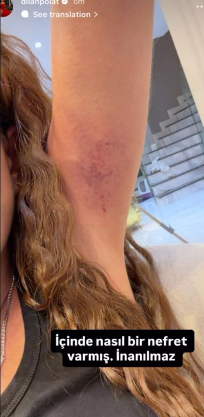 Sıla Doğu'nun kolunu da tırmaladığı anlara ait fotoğrafı da paylaşan Dilan Polat, "Nasıl bir nefret biriktirmiş içinde?" dedi.