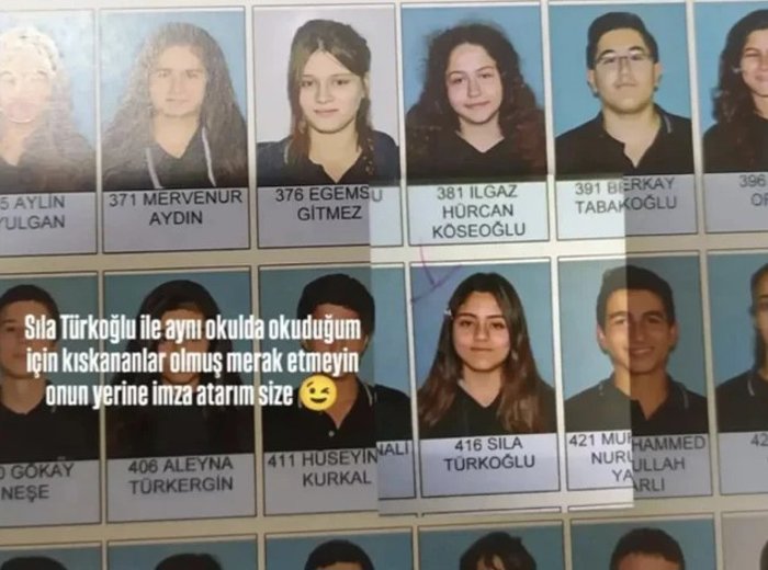 Türkoğlu'nun duru güzelliği yine gündem oldu. Oyuncunun sınıf arkadaşı, fotoğrafa "Sıla Türkoğlu ile aynı okulda okuduğum için kıskananlar olmuş, merak etmeyin onun yerine imza atarım size" notunu yazdı.