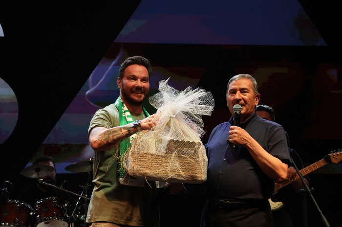 Konser sonrası Darende Belediye Başkanı Alican Bozkurt, Sinan Akçıl'a ilçeye özgü ürünlerden oluşan bir hediye paketi takdim ederek teşekkür etti.