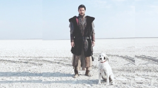 TRT'nin izleyiciyle buluşmak için gün sayan dizisi 'Mevlana'da rol alan Kaan Yıldırım, Konya'daki setine köğeği Benek'i de götürdü.